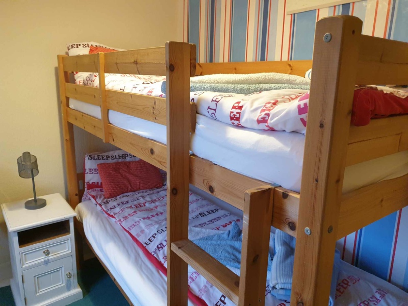 We have 3 bedrooms, 2 double bedded rooms and 1 room with a bunk bed in it, and there is a wardrobe, chest of drawers, and a television in all rooms.