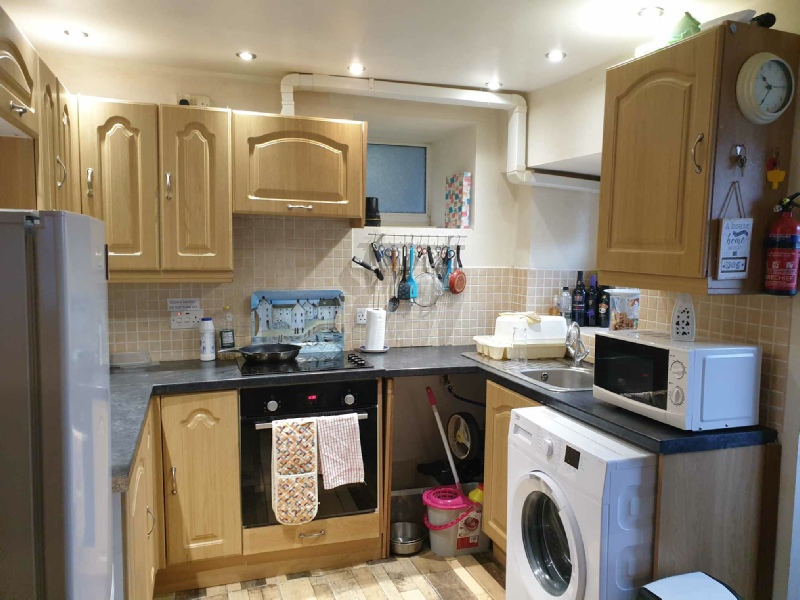 There is a Fully Fitted Kitchen with a Ceramic Hob, Microwave, Fridge Freezer, Washing machine, and all the usual utensils.